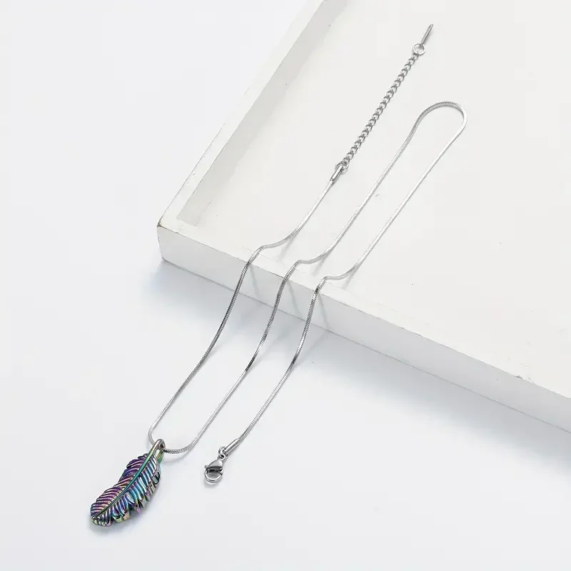 Deze prachtige en unieke veer kunt u personaliseren met een naam, en tevens kunt u de veer vullen met as, parfum of haar van uw overleden dierbaren.