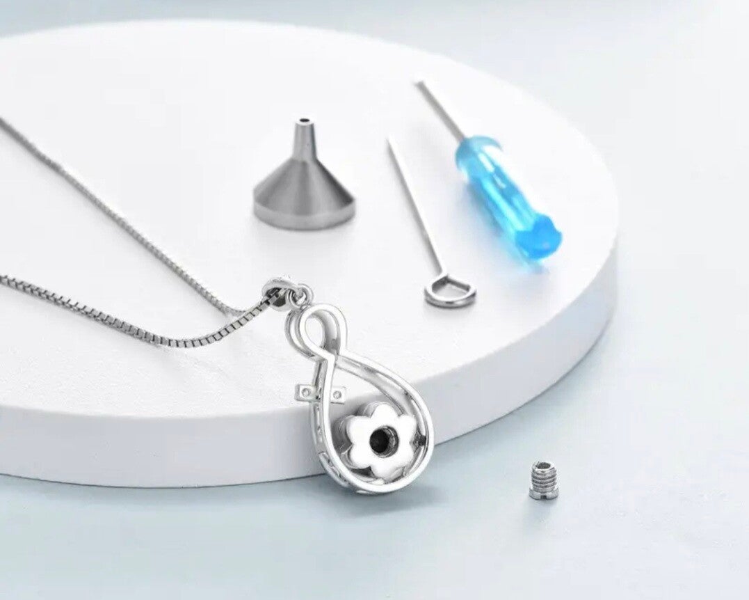 In deze prachtige 925 Sterling Zilveren crematie as ketting bedel, kunt u het as van uw overleden dierenvriendje met u meedragen.