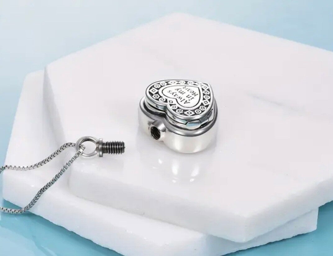 In deze prachtige 925 Sterling Zilveren Ketting Bedel kunt u een foto plaatsen en tevens het as van uw overleden dierbaren bij u dragen.